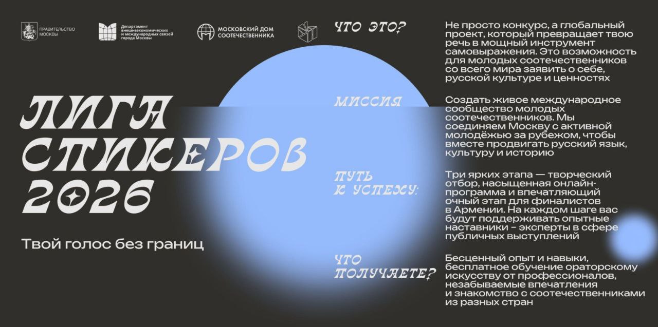 Правительство Москвы продолжает набор молодых соотечественников для участия в международной «Лиге спикеров» – масштабном культурно-образовательном проекте для развития навыков публичных выступлений.