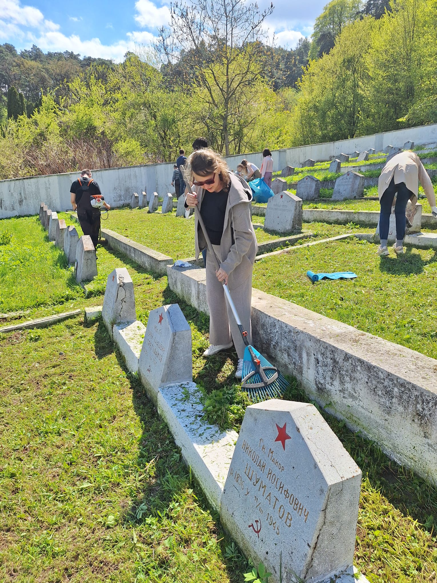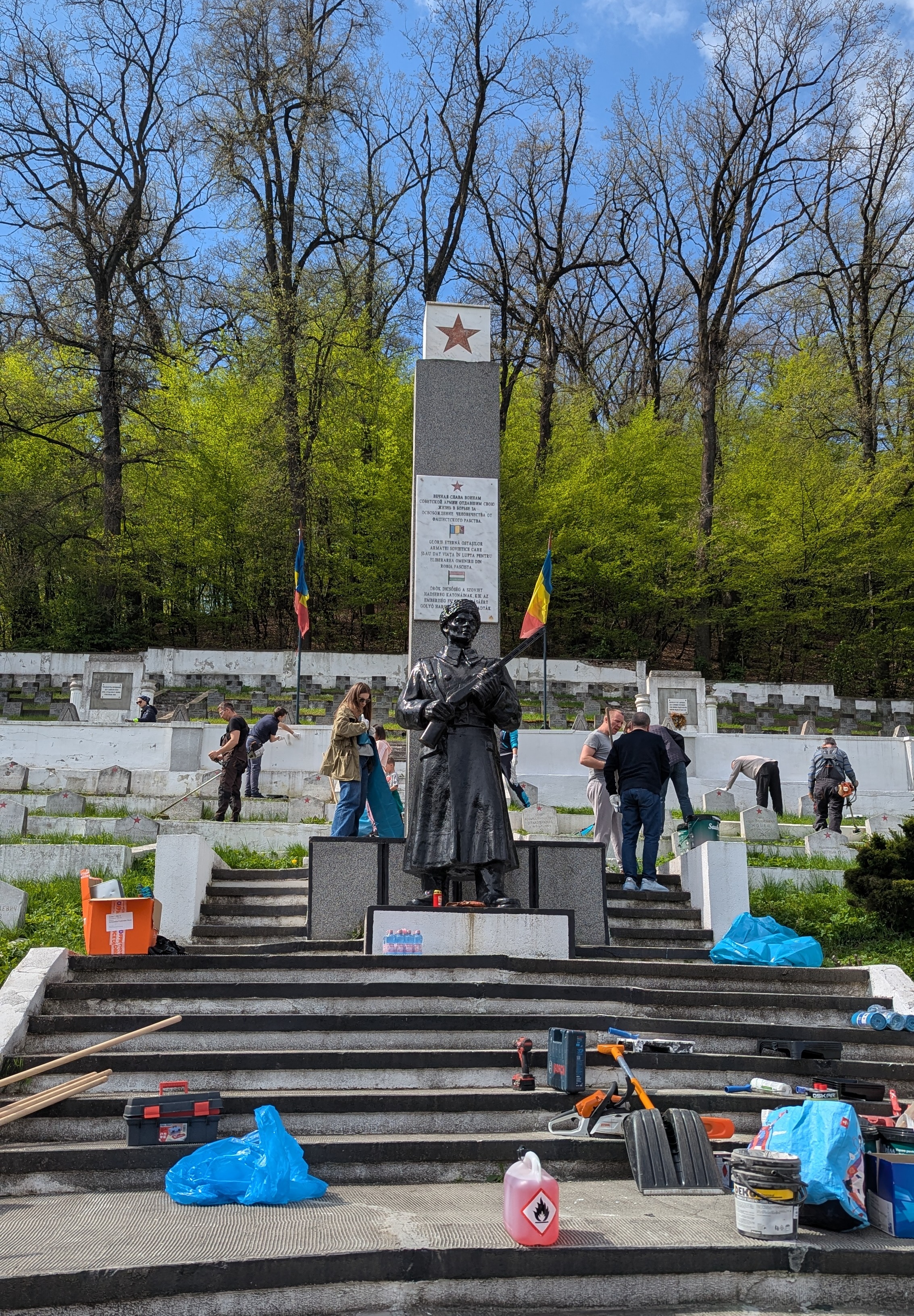 В рамках памятных мероприятий состоялся традиционный субботник, в ходе которого сотрудники Посольств России и Республики Беларусь, соотечественники и неравнодушные румынские граждане произвели уборку советского воинского захоронения, расположенного в западной части Брашова.